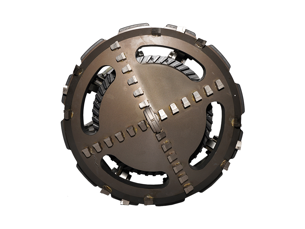 Фрезерная насадка идет в комплекте с твердосплавными сегментами должным образом прикрепленными к корпусу из нержавеющей стали, одним алмазным центровочным сверлом с охлаждающим устройством и алмазными режущими кромками. Кольцо турбины с «плавниками» не только увеличивают крутящий момент, но также обеспечивают возможность движения по прямой.